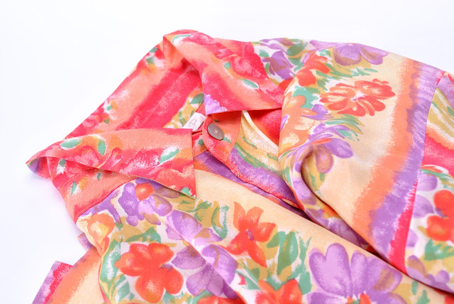 Am gasit aceste piese trecand din greseala pe langa un magazin SH . Am intrat fiind atrasa de culorile din vitrina. Cred ca aceasta camasa din matase este perfecta pentru primvara. Imprimeul floral este superb, ca si cand ar fi pictat cu acuarele.