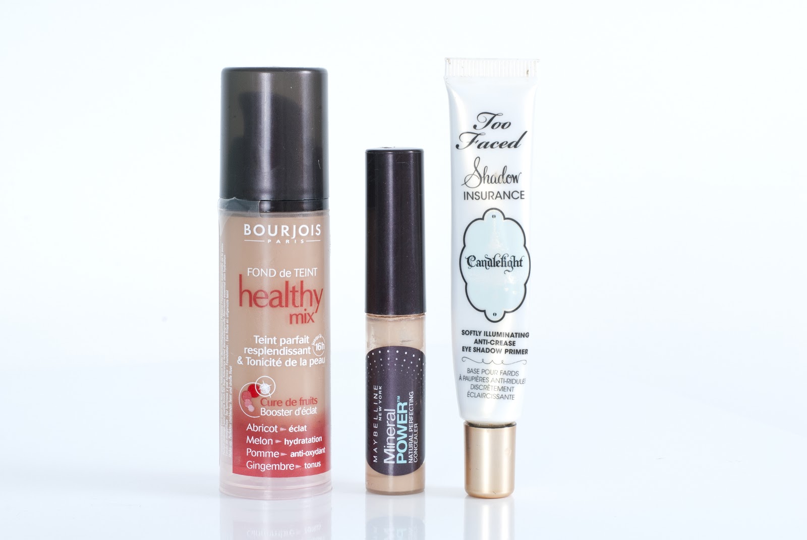 In acest moment folosesc fondul de ten de la Bourjois, Healthy mix care are acoperire medie si o textura destul de densa care mie personal imi place mult. Corectorul mineral de la Maybelline este bunicel si il folosesc de vreo 2-3 ani, dar probabil voi cauta alternative mai bune. Deoarece nu am timp sa retusez machiajul pe timpul zilei, folosesc o baza. Cea de la Too Faced mi se pare foarte buna, culorile sunt mai intense si tin mai mult pe pleoape. In ultima fotografie puteti vedea nuantele mele preferate de fard cu primerul sub.