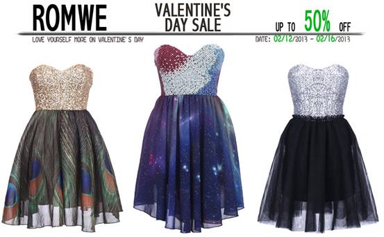Romwe are un cadou pentru voi cu ocazia sarbatorii Sf. Valentin. Pana la 50% reduceri la produsele selectate intre 12-16 Feb. Profitati de ocazie!